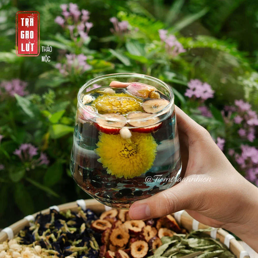 Thành phần:Gạo lứt huyết rồng, Đỗ Đen Xanh Lòng, Hoa Cúc Vàng, Nụ Nhài, Nụ Hồng, Táo Đỏ, Hoa Đậu Biếc, Cỏ Ngọt, Lá Dứa