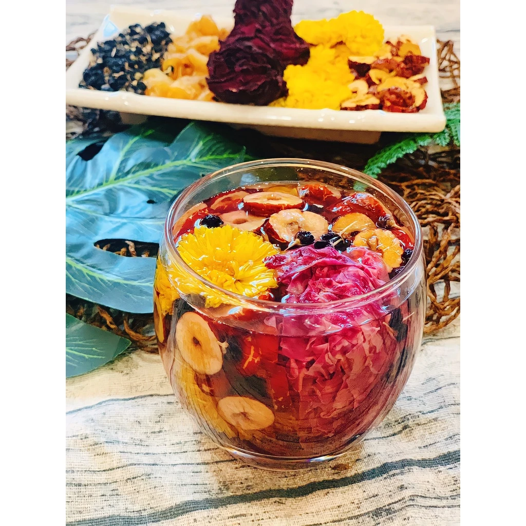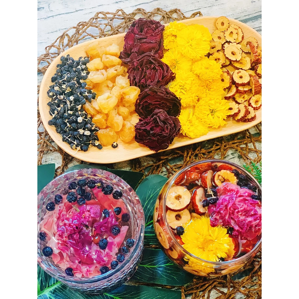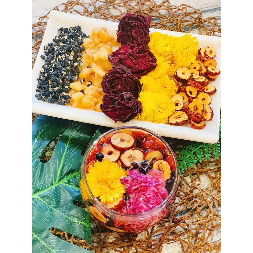 Thành phần: Cúc vàng, táo đỏ, long nhãn, hắc kì tử